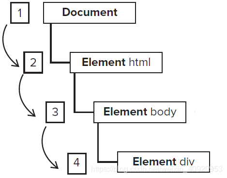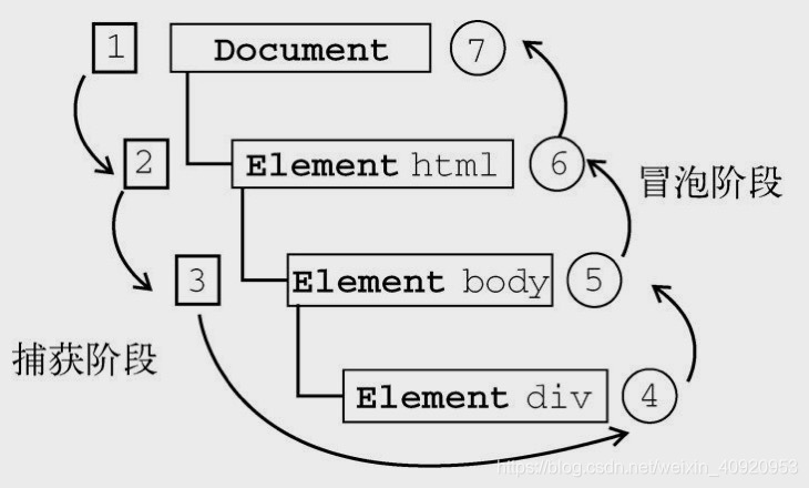 所谓的事件捕获就是从最大范围(document)开始,一级一级往下找,知道找到最精确的事件源(触发事件的节点,如图div节点)为止的过程。虽然大多数浏览器都支持事件捕获,但很少有人使用。